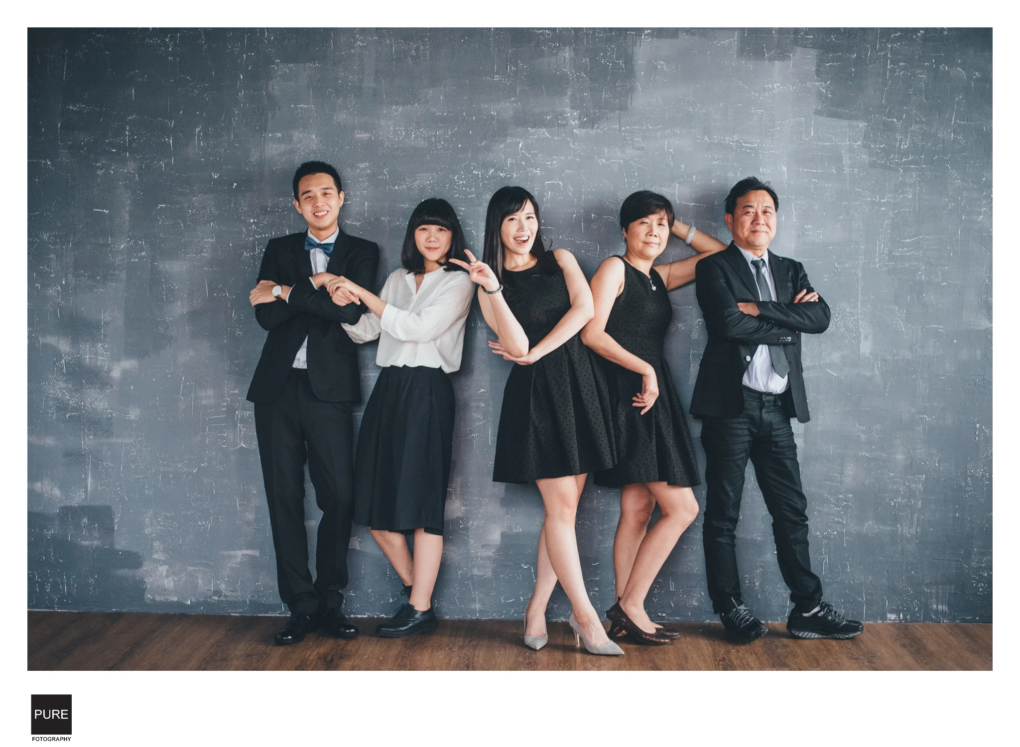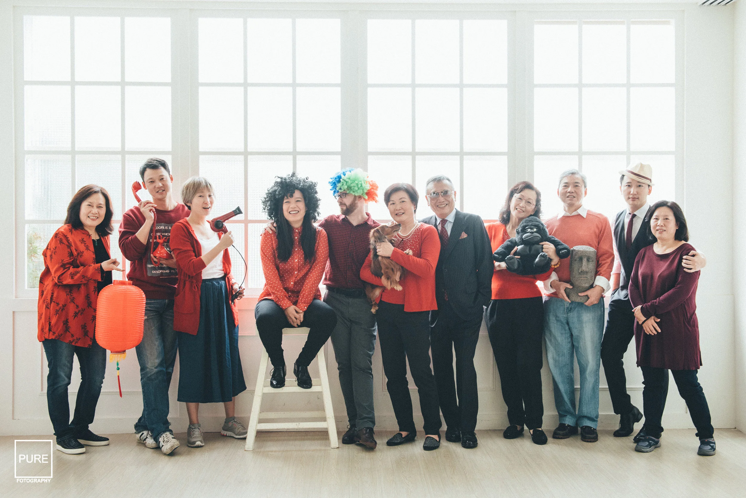 和PURE接觸的Rachel怕家人在準備上太花時間,於是請家人穿著紅色相關的衣服,並沒有限制款式。 不同色調的紅色排成一列反而有層次感,所以不用太害怕反而很嚴謹的準備衣服喔!