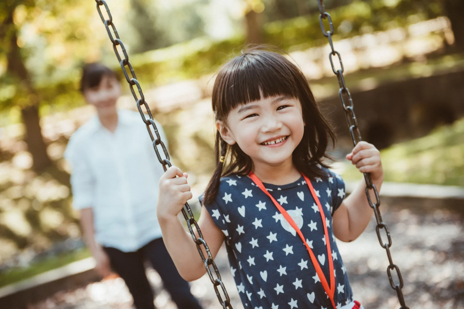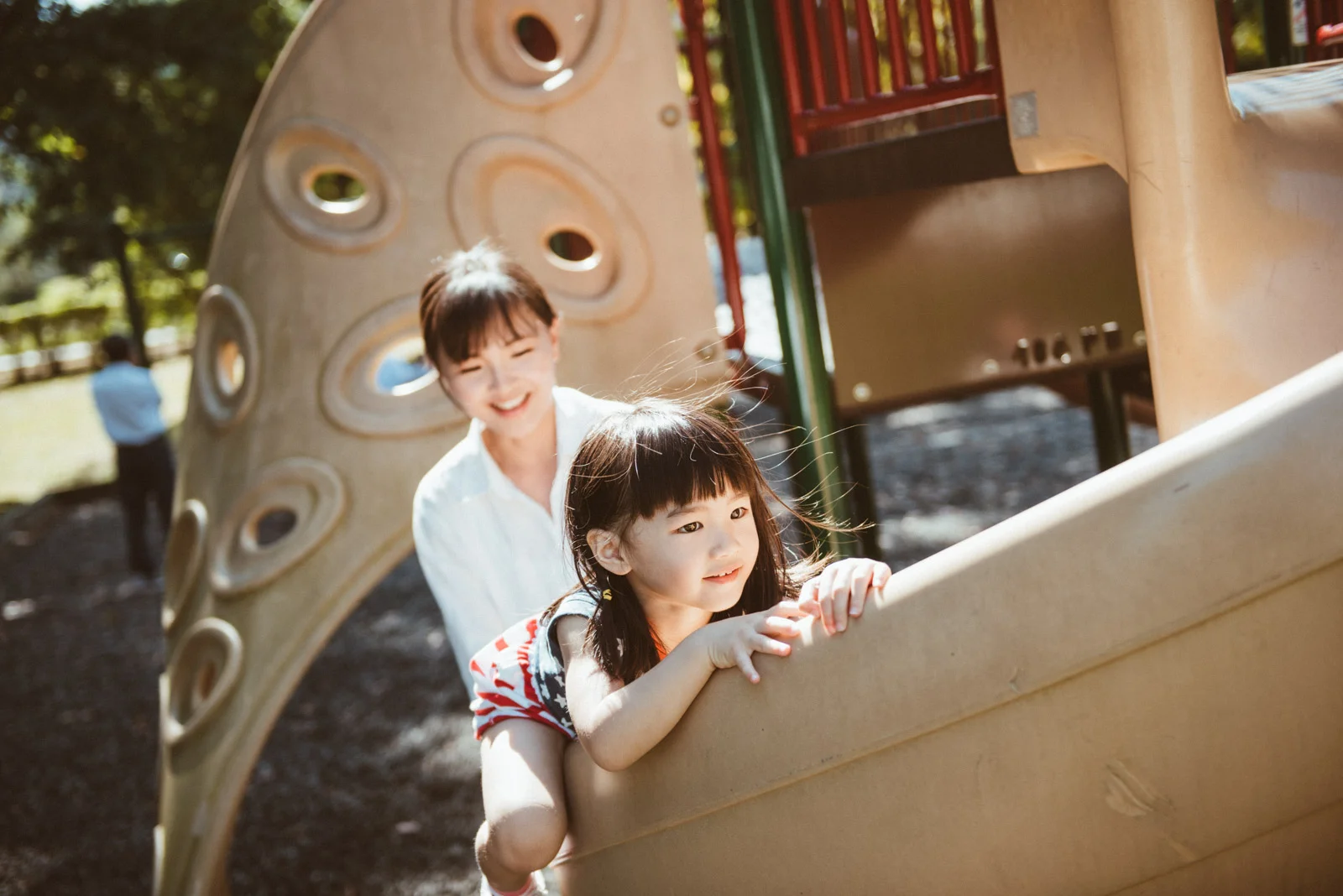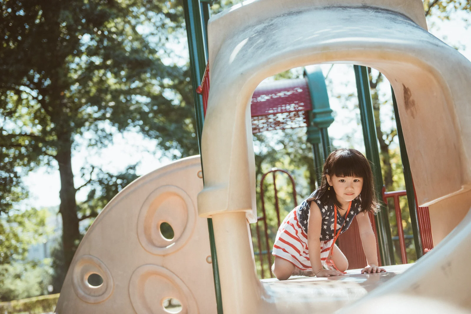 亮亮學習著怎麼盪鞦韆、溜滑梯,