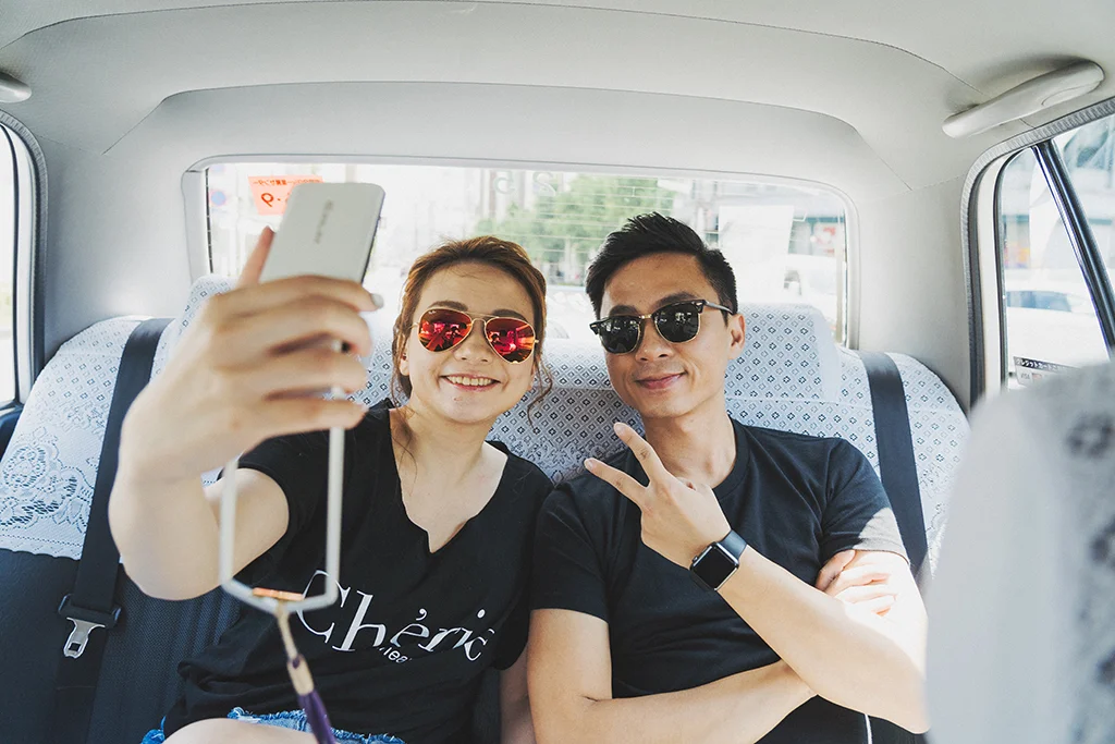 剛好這次Monica和Eric帶了多副墨鏡打算搭配著戴,