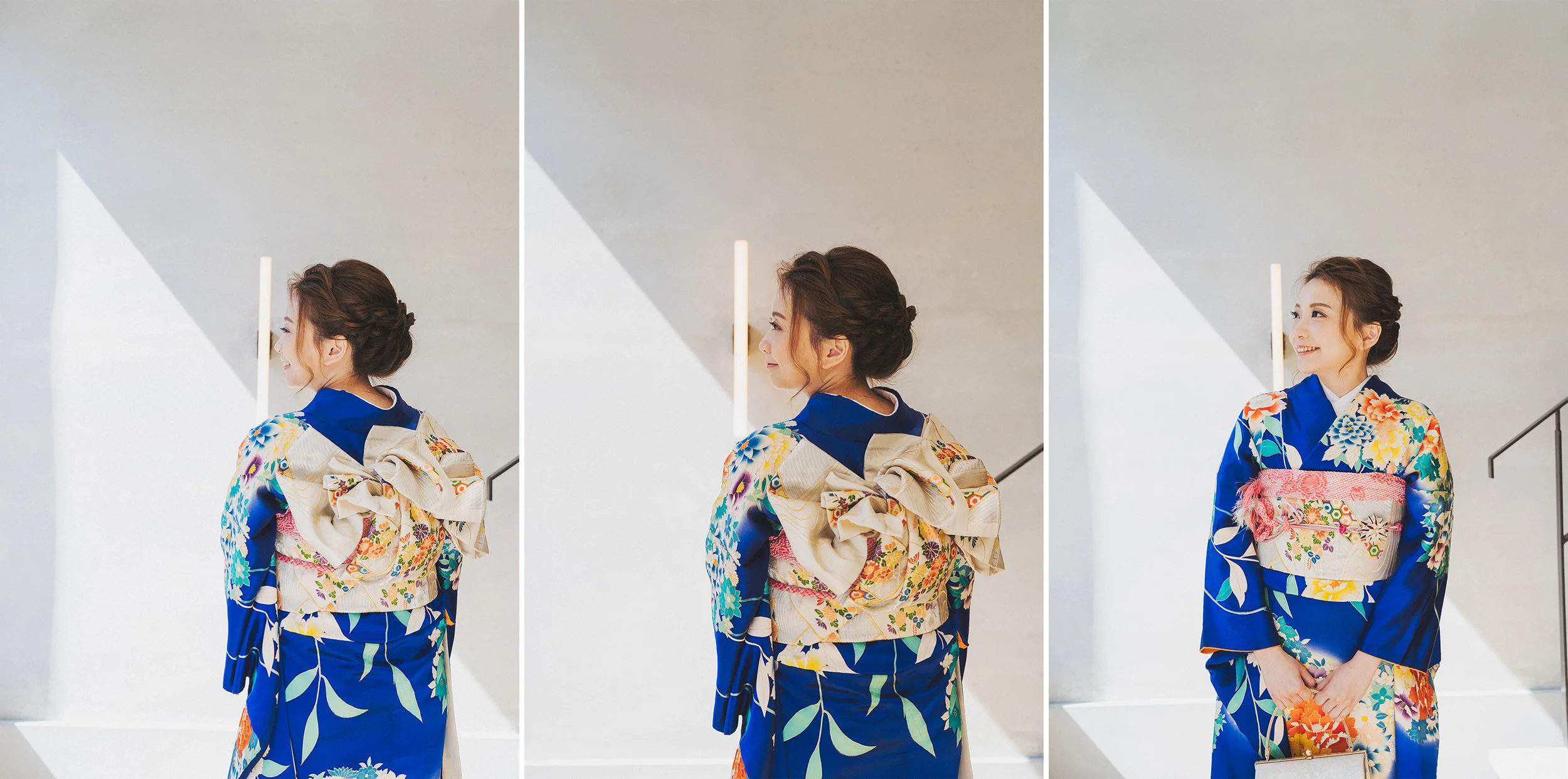 店內通往二樓換裝的階梯口,有光影穿透的完美拍攝空間,立馬幫Monica記錄下來。 振袖腰封後的結真的超美超華麗,這麼美的扮相如果只是交給另一半用手機拍豈不是太可惜了!