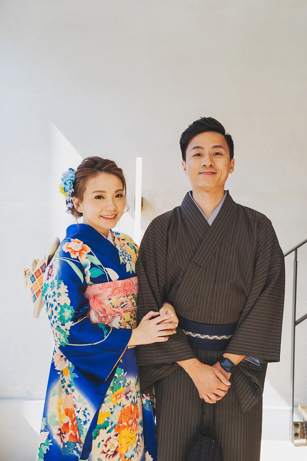 老闆娘一聽到我們是來拍婚紗照的,特地拿出了兩件華麗的振袖,
