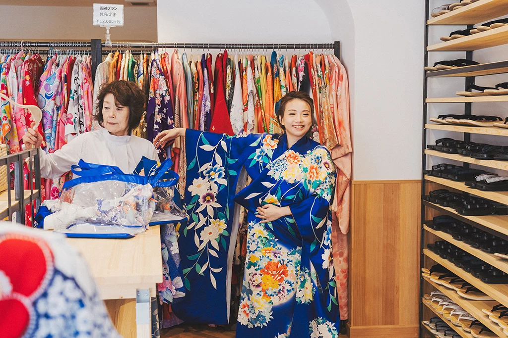 就是希望客人換上他們的古董和服在京都悠閒漫步,