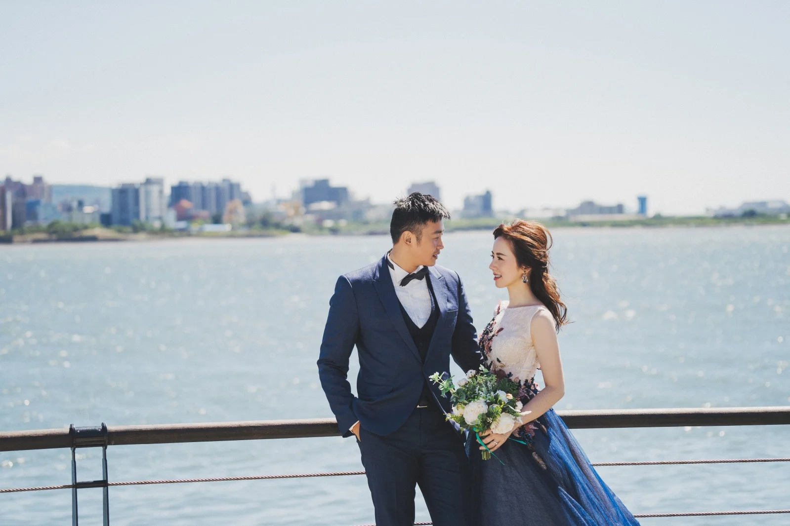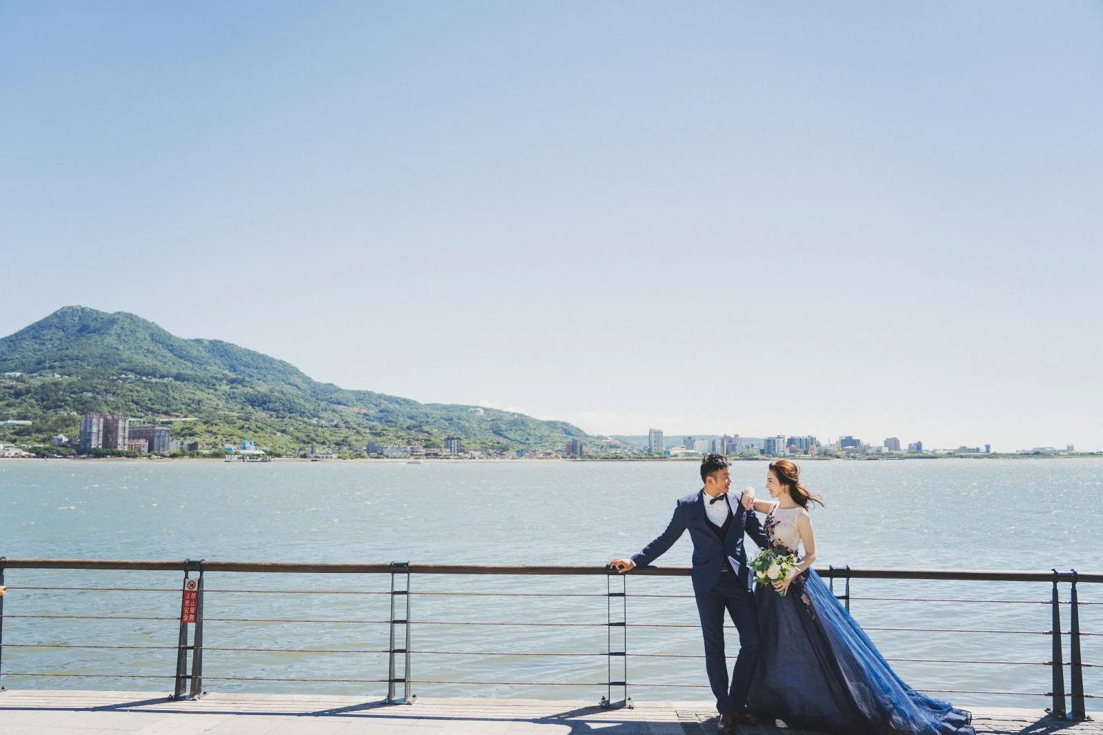 淡水的天空一點雲也沒有,整個拍攝畫面超級乾淨美好,台北看起來特別美好!