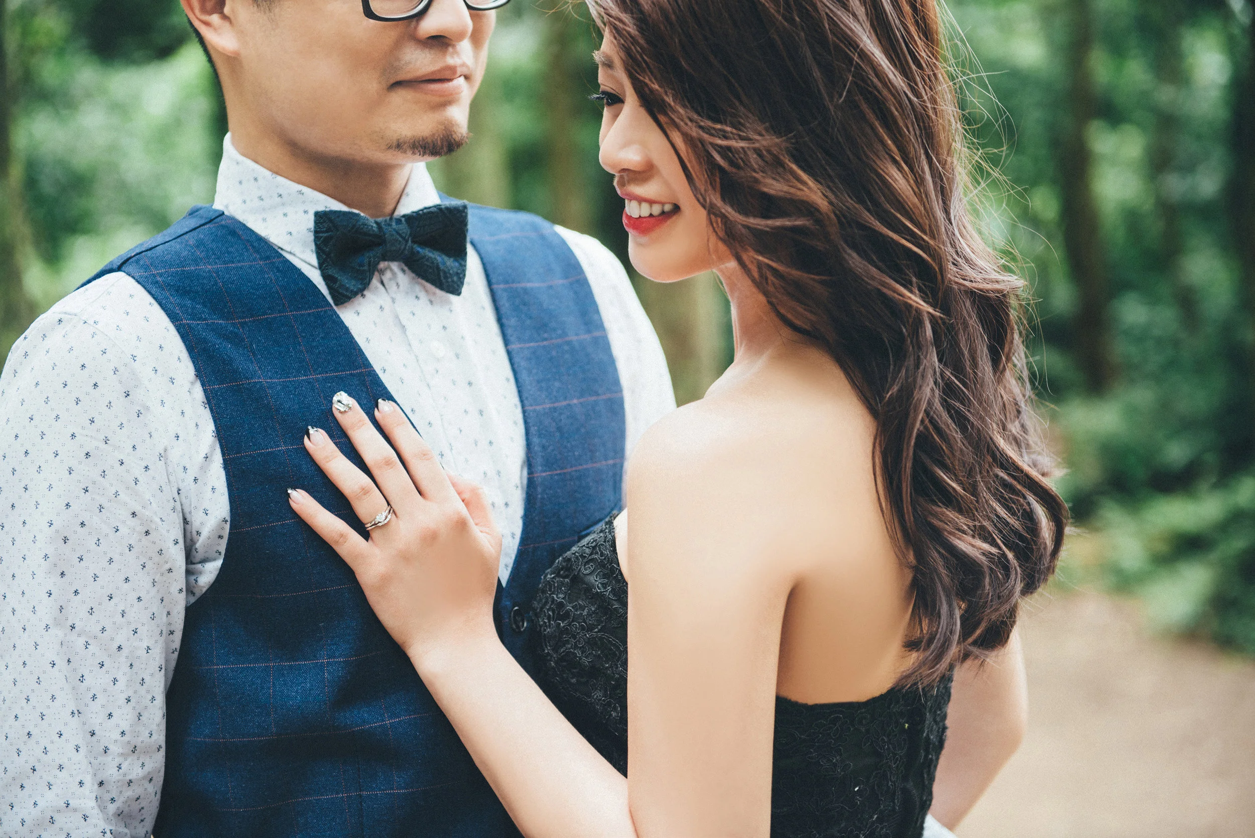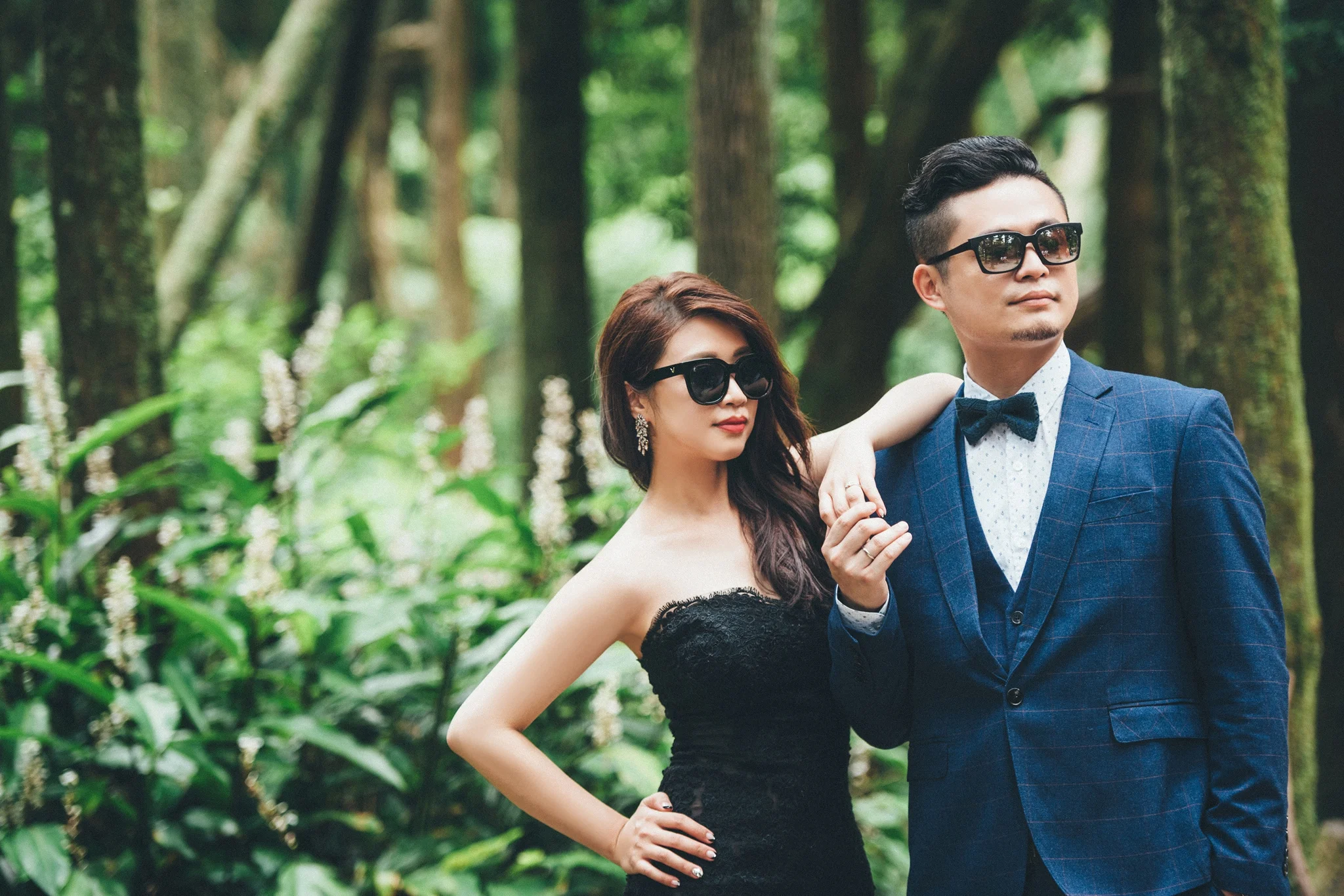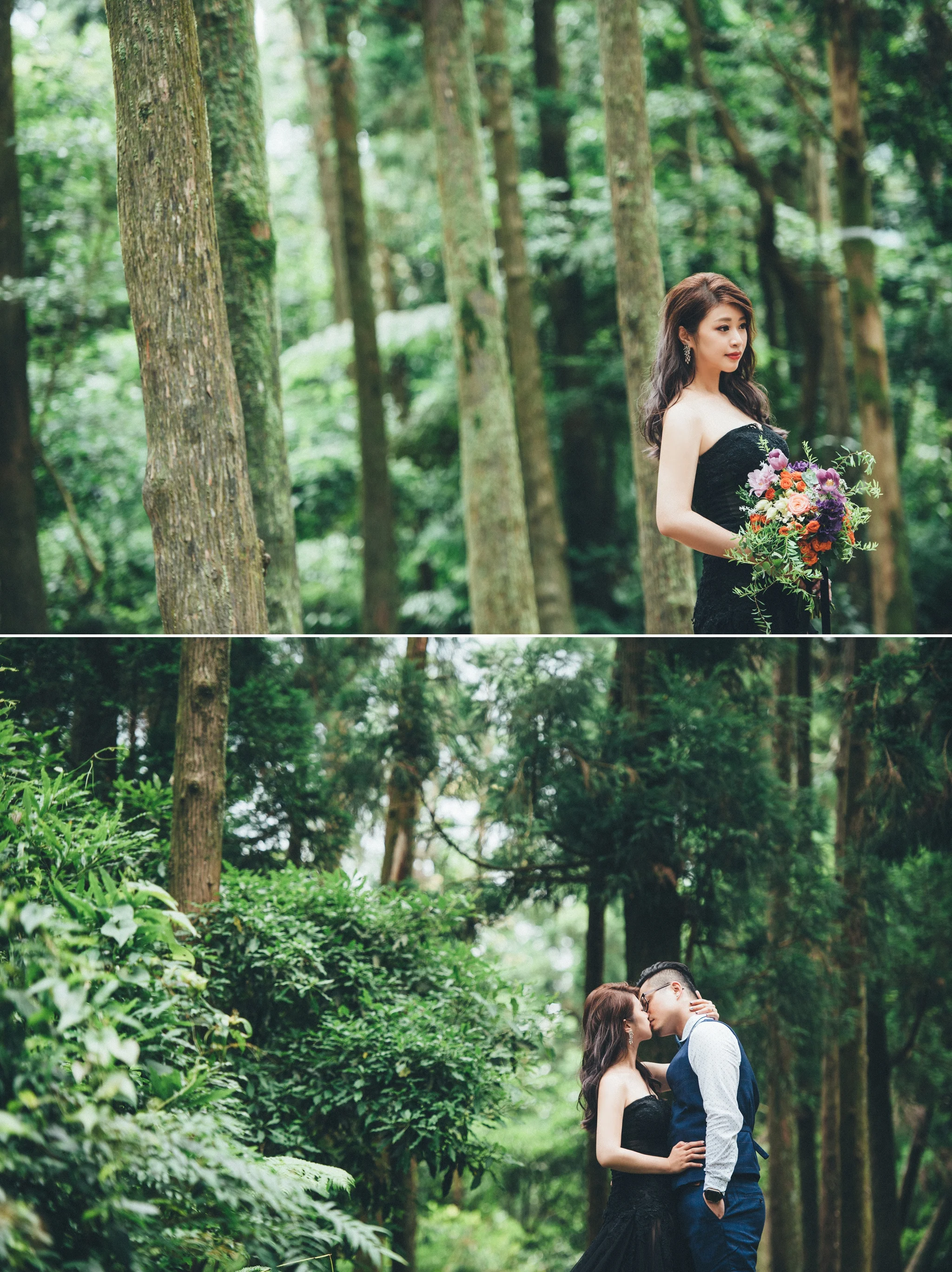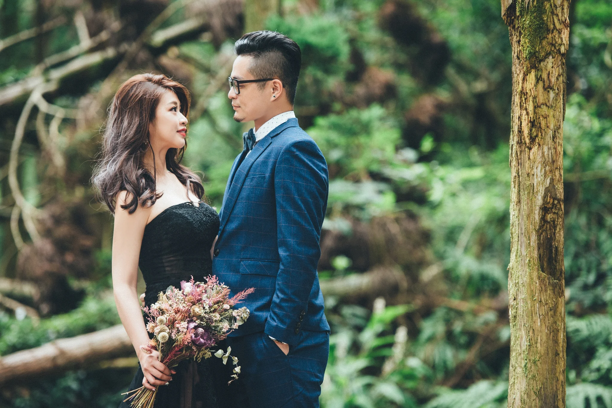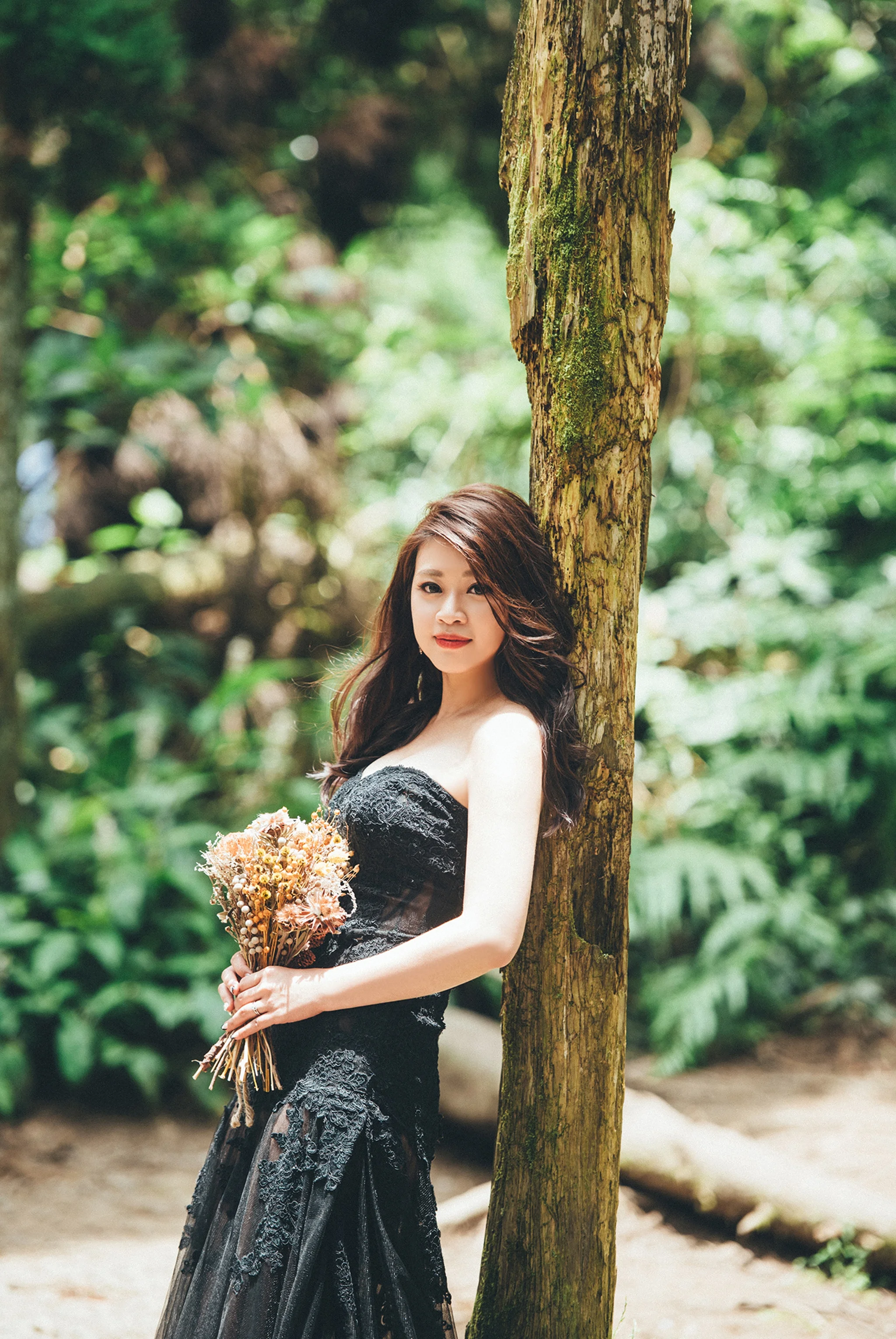 黑色禮服在黑森林中多了種神祕的氣質,家中長輩如果不忌諱的新人其實可以試試看黑禮服,修身效果其實很好唷!