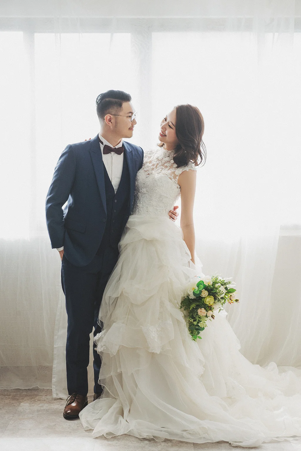 換上的便服是他們公證結婚當天的服裝,這次婚紗想要輕鬆又想要延續新婚的感覺,而這樣的裝扮是最佳選擇。