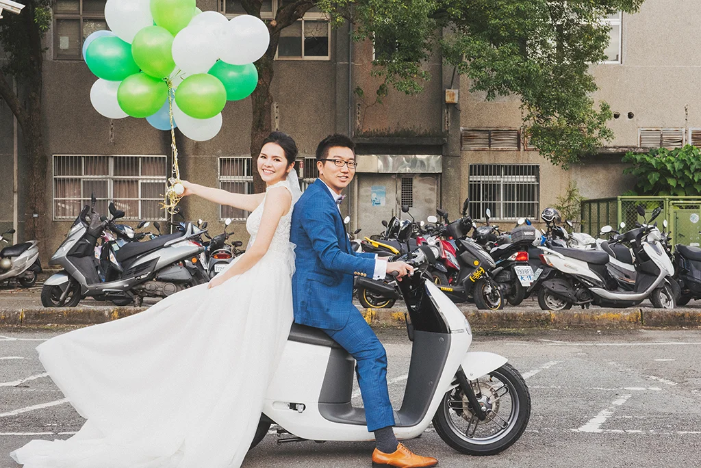 氣球或是長頭紗等等都可以增加畫面的活潑感~