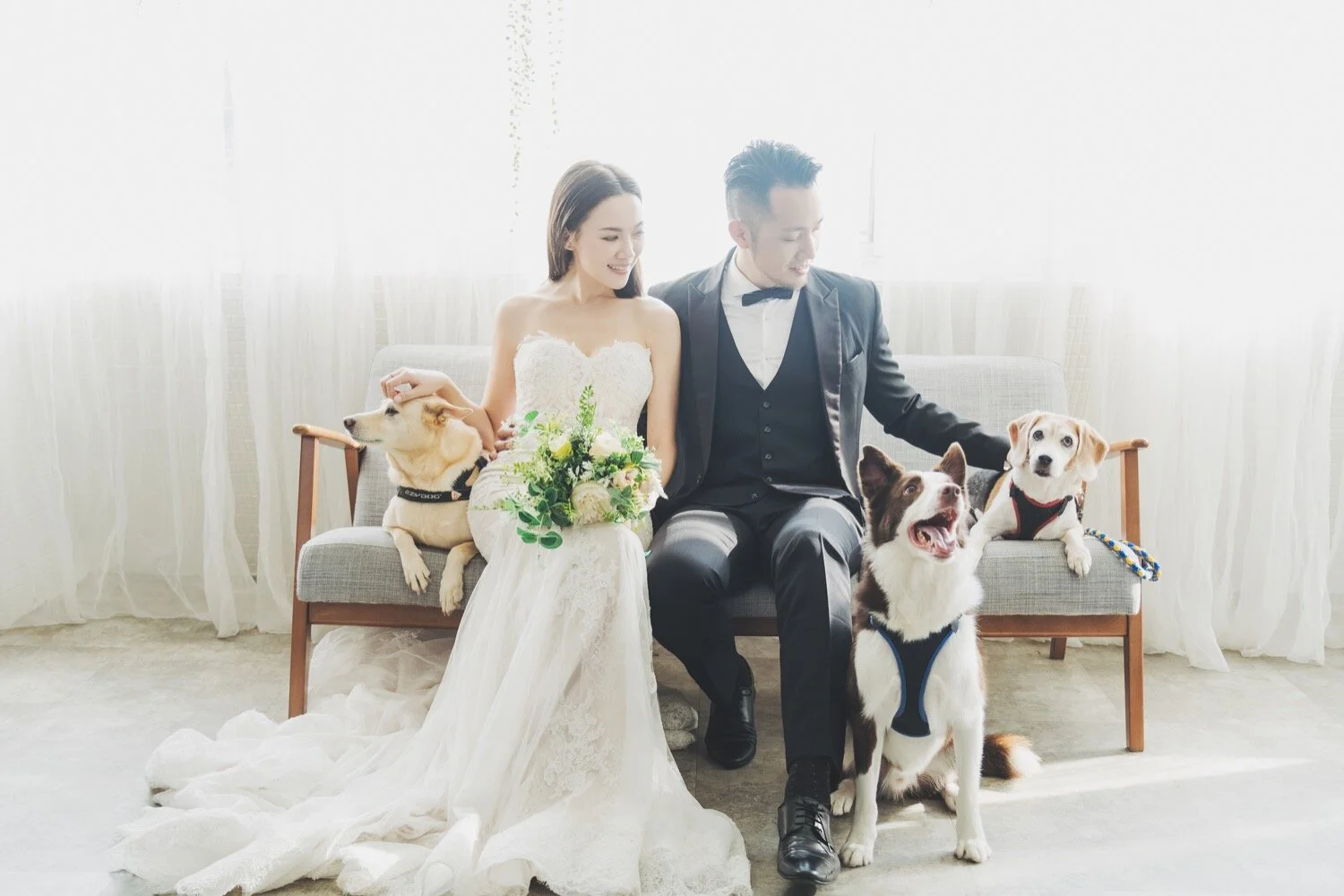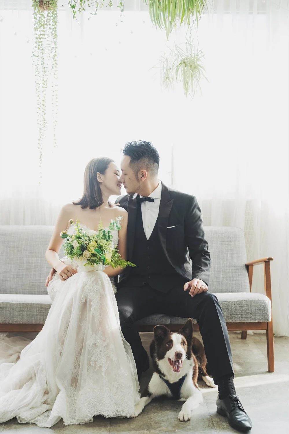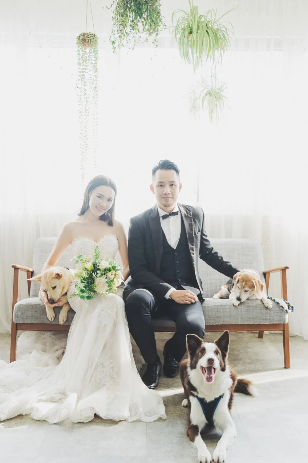 棚拍婚紗|寵物婚紗|經典優雅風格|Rita + Vincent 棚拍婚紗|寵物婚紗|經典優雅風格|Rita + Vincent關於婚禮,這幾年大家特別喜歡簡單、輕鬆不辛苦的完成。婚紗攝影也不例外,越來越多的客人們想以單純的攝影棚拍來完成,完成這紀念性的一刻,而也不乏有許多客人開始每年的紀錄,紙婚、布婚、皮婚…等。看到兩人每年的變化、創造屬於自己的愛情故事。跟大家分享Rita、Vincent的婚紗影像。簡約優雅而不簡單,以半天的時間就能完成,同時加上可愛的三個毛小孩們,擁有的回憶更與眾不同!Photographer:Wealthy LiangMakeup artist:Peggy YuDress:White 手工婚紗 也想聊聊這次Rita的髮型、妝感,都是非常的簡約、乾淨,一收一放,在包頭的部分,也是以收乾淨刻意以沒有太多層次來凸顯Rita五官的精緻。Vincent的穿搭也是非常值得收藏,以淺色西裝為主體,但用深色背心來增加層次感,將米白色西裝穿得非常淋漓盡致!只能說白西裝搭配得宜,在影像的畫面上完全是畫龍點睛非常讓人眼睛為之一亮的! 而灰色的純素背景也是許多新人的最愛,歷久彌新的畫面通常也都是用最簡單的背景所完成。奧黛麗赫本的經典黑白照,至今仍是美、藝術的代號!單純的背景映照出一對佳人的美,也是因為純粹所以更加經典,讓人在十年、二十年後依舊能看著這影像的美好,不盲從流行,反倒留下最真誠的那時刻永遠不膩。 Rita也是個超級有愛心的女孩,路邊照顧浪狗浪貓,甚至因此家裡默默多了三個成員,笑著說:在路上看到浪孩子們,都不敢再輕易帶回家,因為家裡滿編了。但我們看到Rita依舊很有愛的分享狗狗貓咪們的消息,希望能有更多愛他們的人能領養,讓他們擁有更美好的家。 喜歡這樣的影像分享嗎?歡迎接洽PUREFOTO Photography, 台灣自助婚紗, 寵物婚紗PUREFOTOJanuary 19, 2020美式婚紗, 攝影棚, 寵物婚紗, 自助婚紗, 台北婚紗, 台北棚拍 Facebook0 Pinterest0 0 Likes