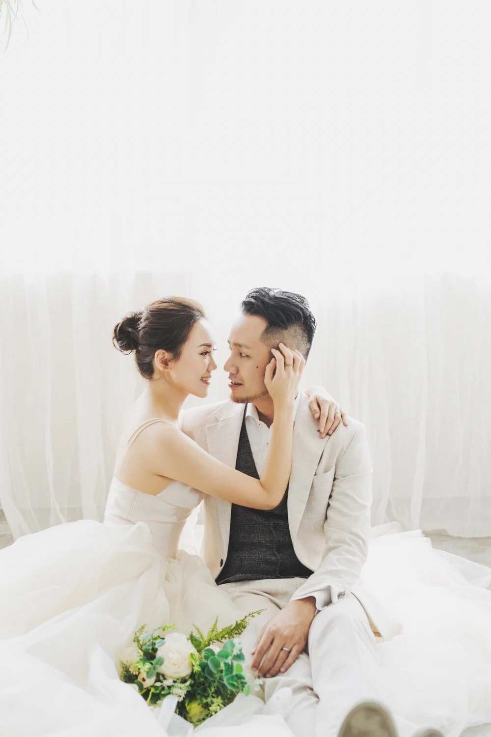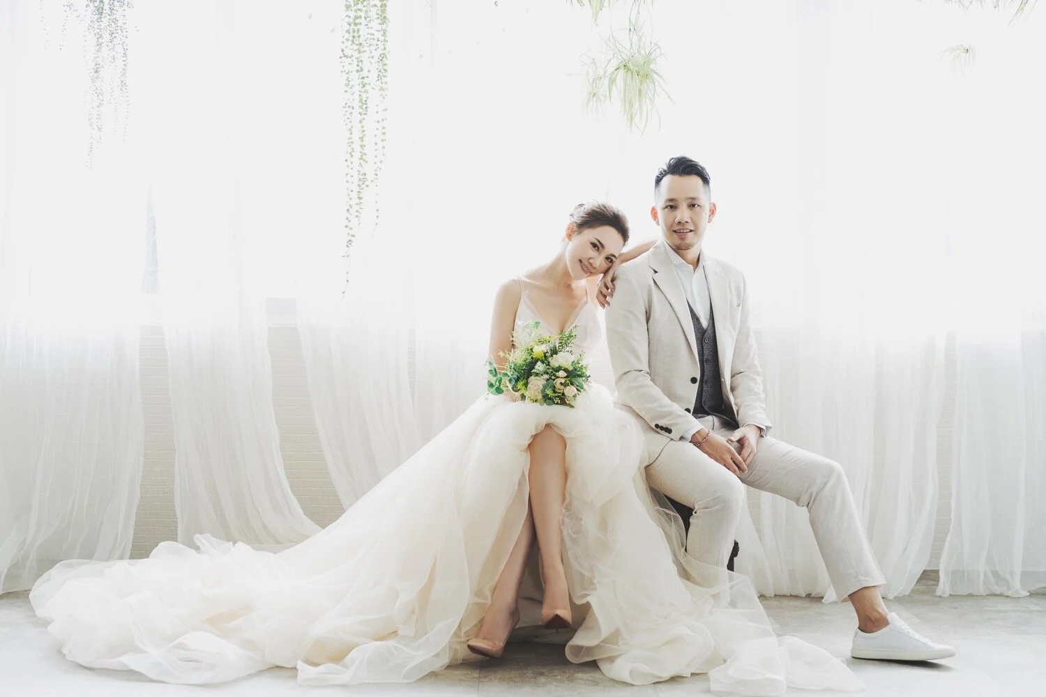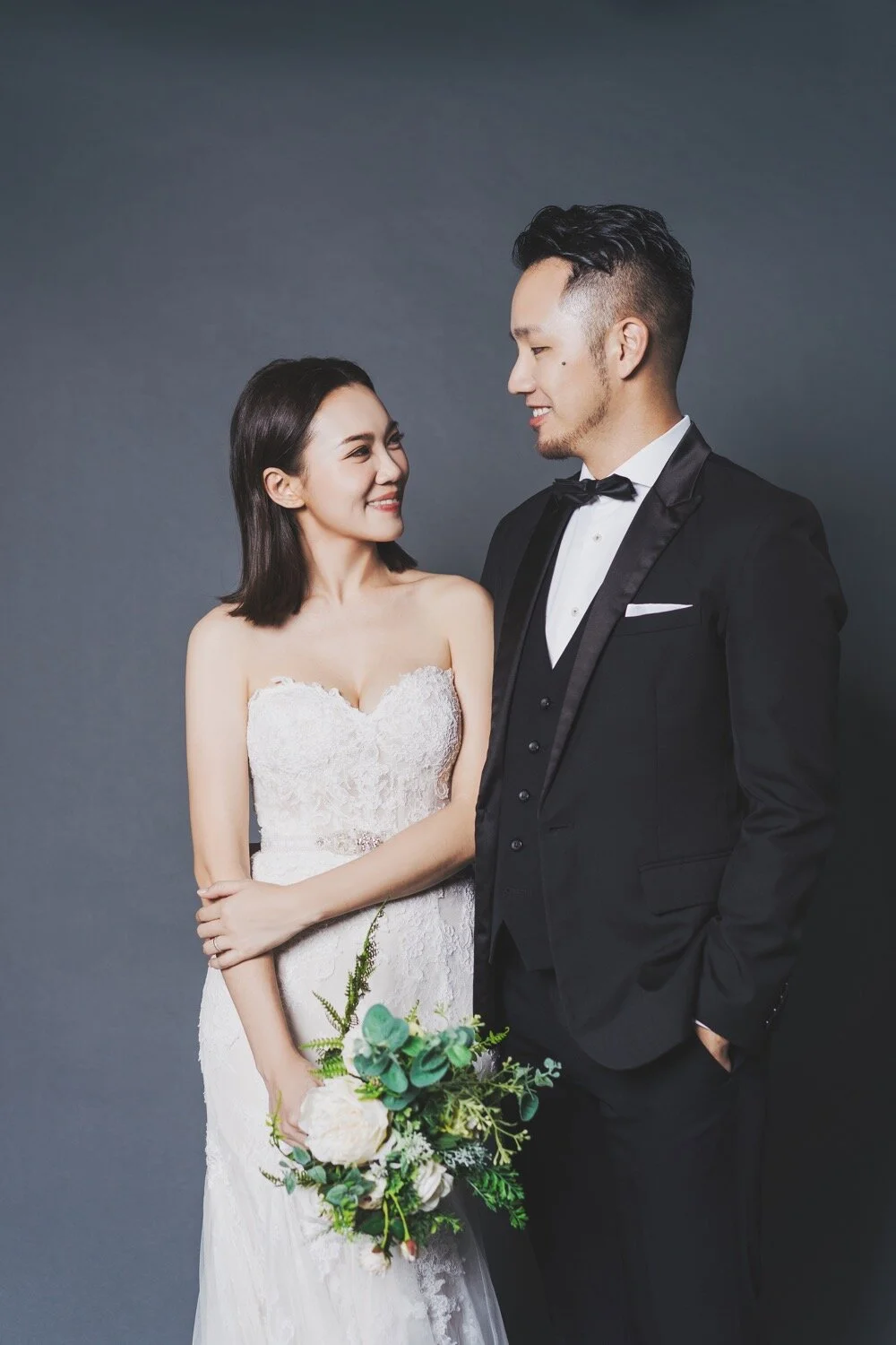 棚拍婚紗|寵物婚紗|經典優雅風格|Rita + Vincent 棚拍婚紗|寵物婚紗|經典優雅風格|Rita + Vincent關於婚禮,這幾年大家特別喜歡簡單、輕鬆不辛苦的完成。婚紗攝影也不例外,越來越多的客人們想以單純的攝影棚拍來完成,完成這紀念性的一刻,而也不乏有許多客人開始每年的紀錄,紙婚、布婚、皮婚…等。看到兩人每年的變化、創造屬於自己的愛情故事。跟大家分享Rita、Vincent的婚紗影像。簡約優雅而不簡單,以半天的時間就能完成,同時加上可愛的三個毛小孩們,擁有的回憶更與眾不同!Photographer:Wealthy LiangMakeup artist:Peggy YuDress:White 手工婚紗 也想聊聊這次Rita的髮型、妝感,都是非常的簡約、乾淨,一收一放,在包頭的部分,也是以收乾淨刻意以沒有太多層次來凸顯Rita五官的精緻。Vincent的穿搭也是非常值得收藏,以淺色西裝為主體,但用深色背心來增加層次感,將米白色西裝穿得非常淋漓盡致!只能說白西裝搭配得宜,在影像的畫面上完全是畫龍點睛非常讓人眼睛為之一亮的! 而灰色的純素背景也是許多新人的最愛,歷久彌新的畫面通常也都是用最簡單的背景所完成。奧黛麗赫本的經典黑白照,至今仍是美、藝術的代號!單純的背景映照出一對佳人的美,也是因為純粹所以更加經典,讓人在十年、二十年後依舊能看著這影像的美好,不盲從流行,反倒留下最真誠的那時刻永遠不膩。 Rita也是個超級有愛心的女孩,路邊照顧浪狗浪貓,甚至因此家裡默默多了三個成員,笑著說:在路上看到浪孩子們,都不敢再輕易帶回家,因為家裡滿編了。但我們看到Rita依舊很有愛的分享狗狗貓咪們的消息,希望能有更多愛他們的人能領養,讓他們擁有更美好的家。 喜歡這樣的影像分享嗎?歡迎接洽PUREFOTO Photography, 台灣自助婚紗, 寵物婚紗PUREFOTOJanuary 19, 2020美式婚紗, 攝影棚, 寵物婚紗, 自助婚紗, 台北婚紗, 台北棚拍 Facebook0 Pinterest0 0 Likes