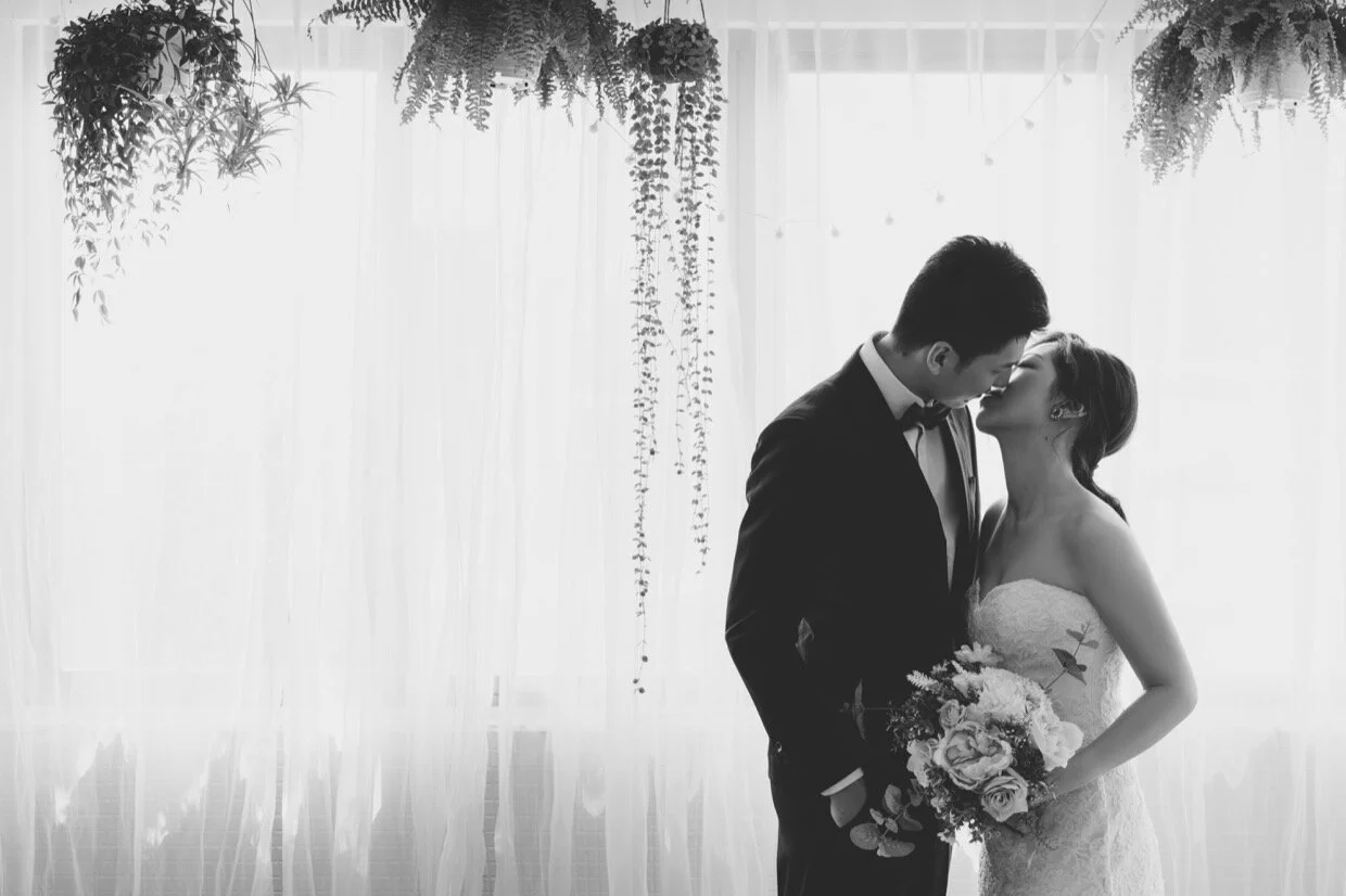 大片窗光下的一吻,在黑白的畫面中顯得寧靜又永恆。