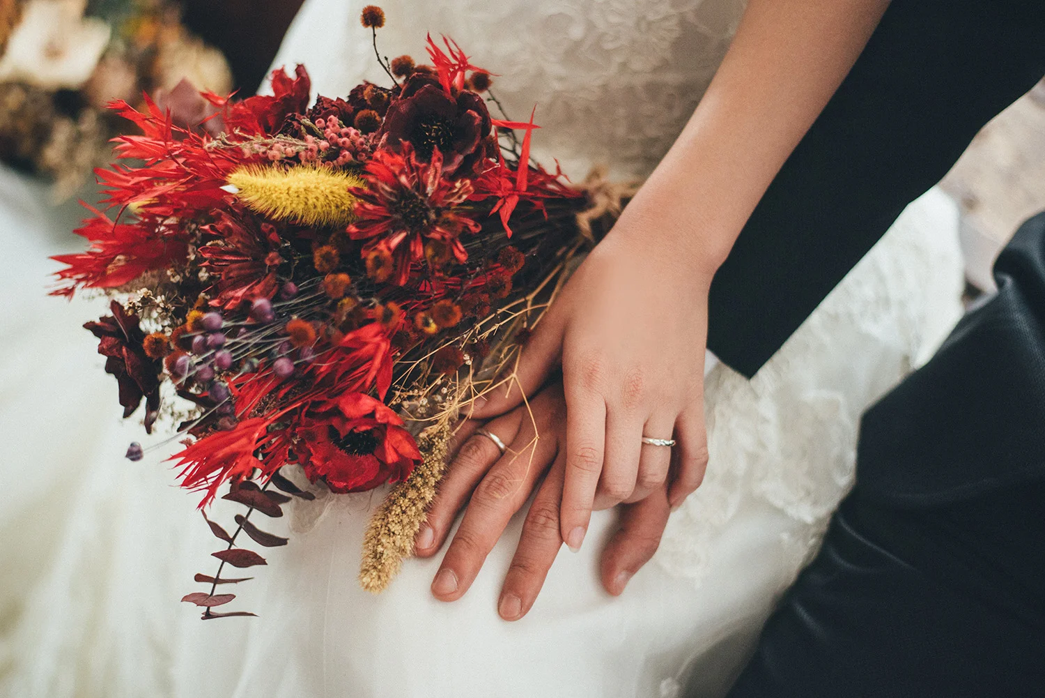 當然,也會有些新人喜歡較為復古懷舊,或許選擇了古董婚紗,這時候其實我們會很推薦可以選擇乾燥花,
