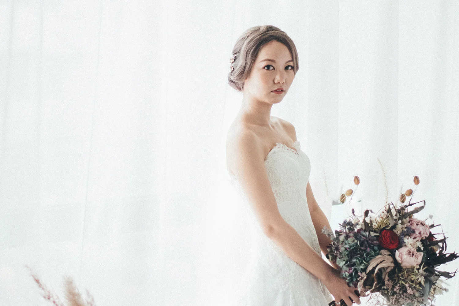 其實捧花分有許多類型,端看你的照片風格或是挑選的禮服色系。