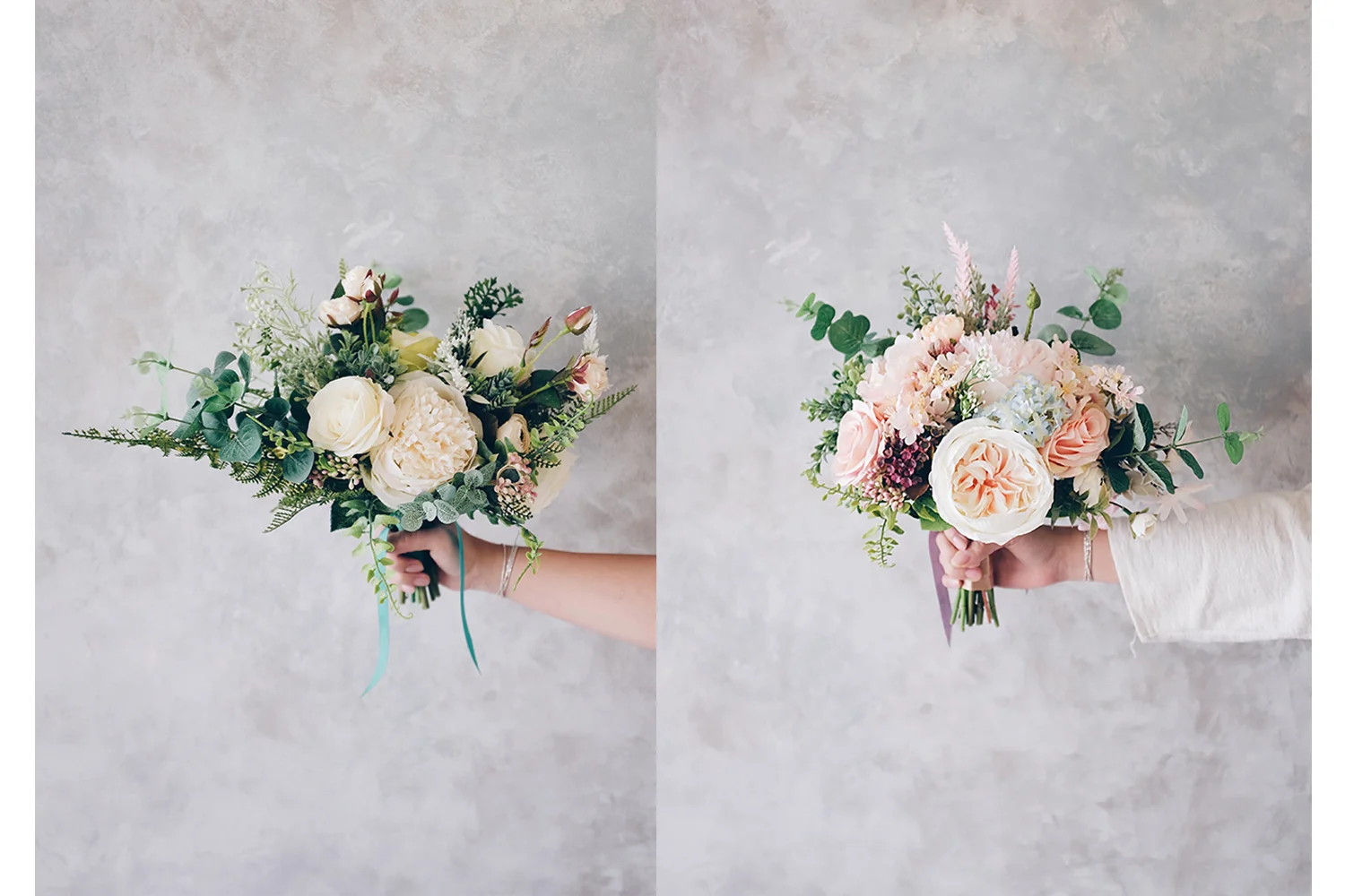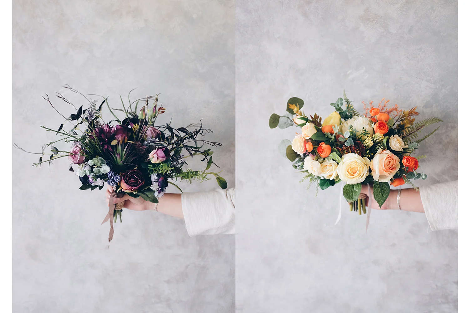 在於婚紗拍攝,我們其實多數使用人造捧花,或是乾燥花在於影像上。