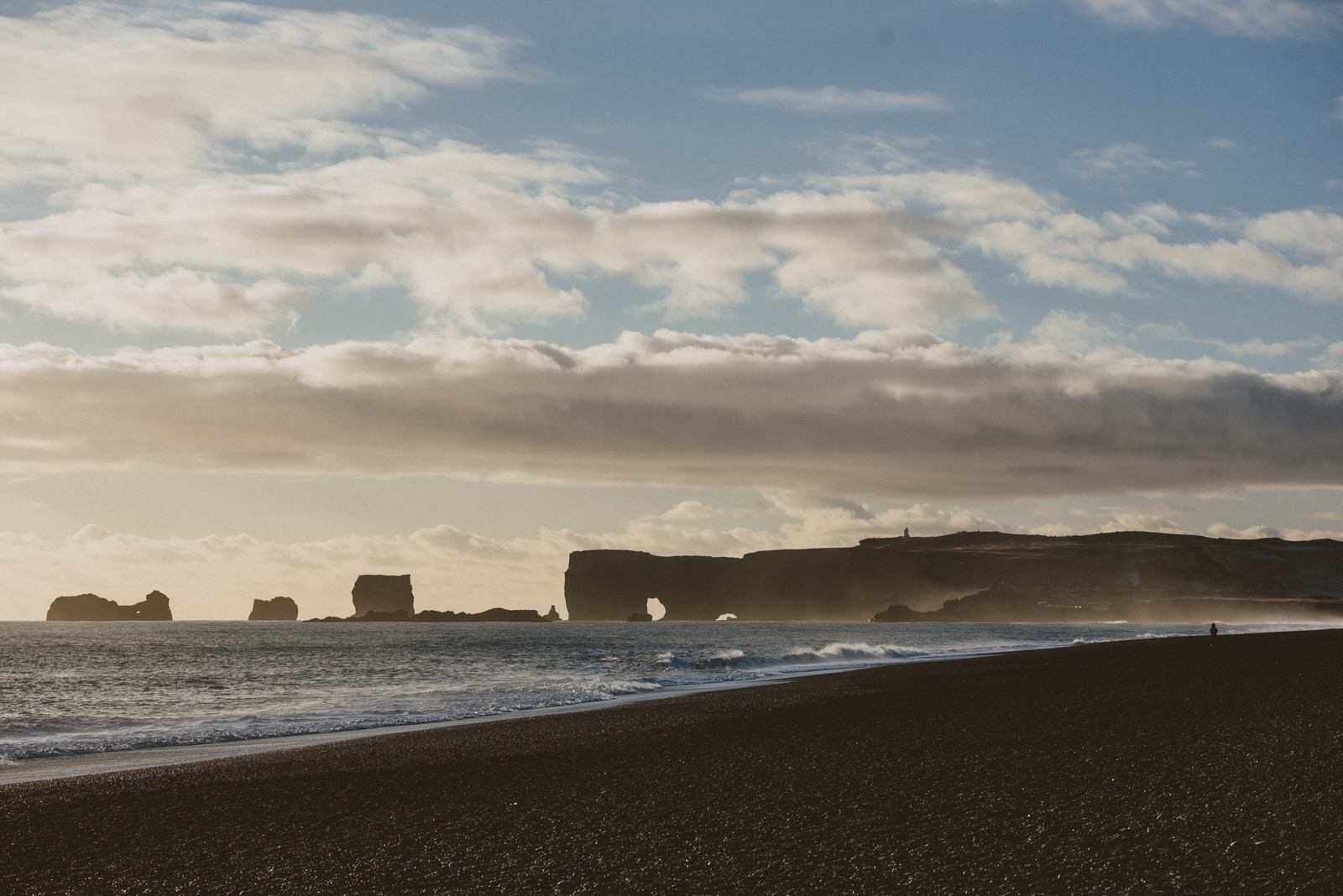 從上面的照片可以看到不同的天氣,黑沙灘的玄武岩壁所呈現的樣貌是完全的不同,