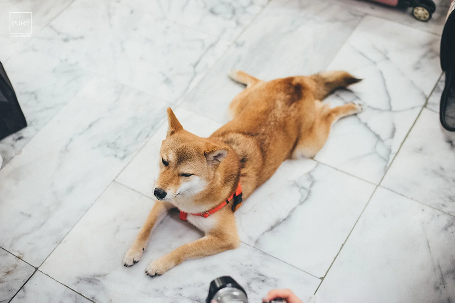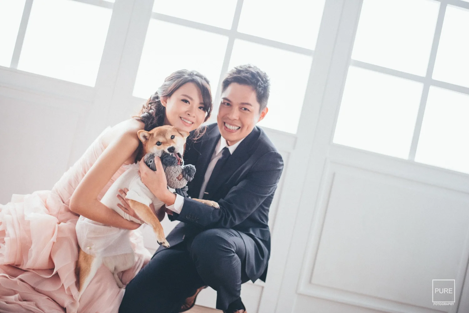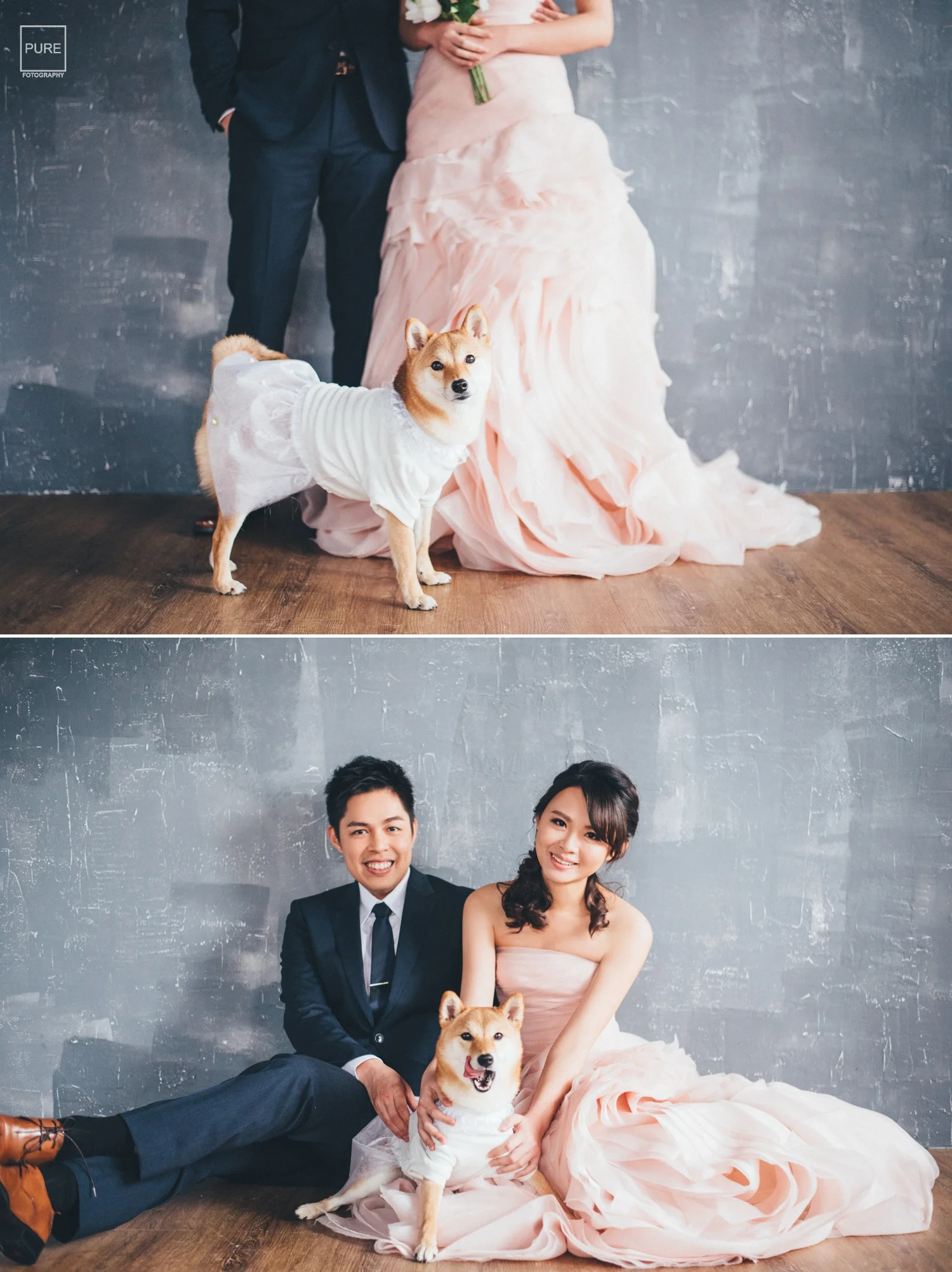 在出國拍攝前,美汝希望能跟家裡的毛小孩一起穿著婚紗拍攝回憶。