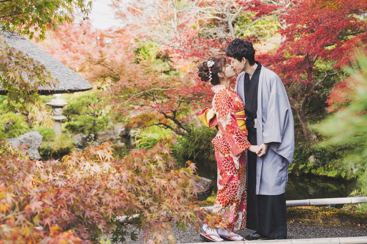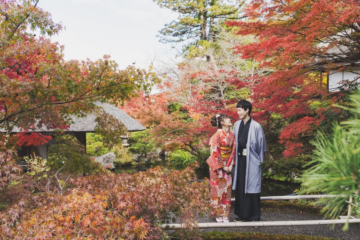 所以2018年京都海外婚紗,他們就成了第一組紅葉團的新人了!