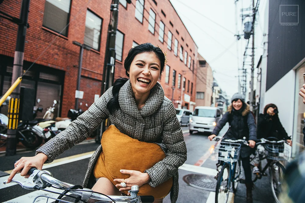 也可以瘋狂的騎腳踏車,體驗在京都單車婚紗之旅。