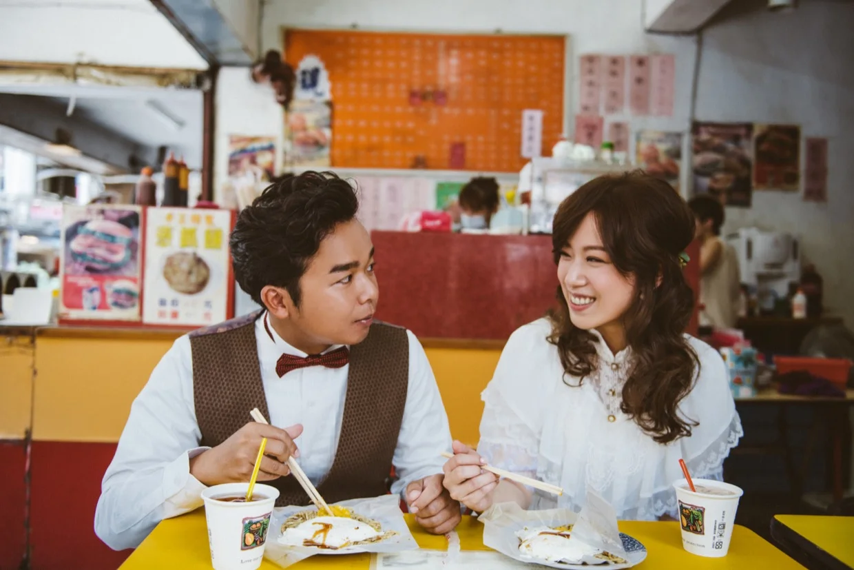 而且即使在早餐店拍攝依舊能夠一眼看出是婚紗照,